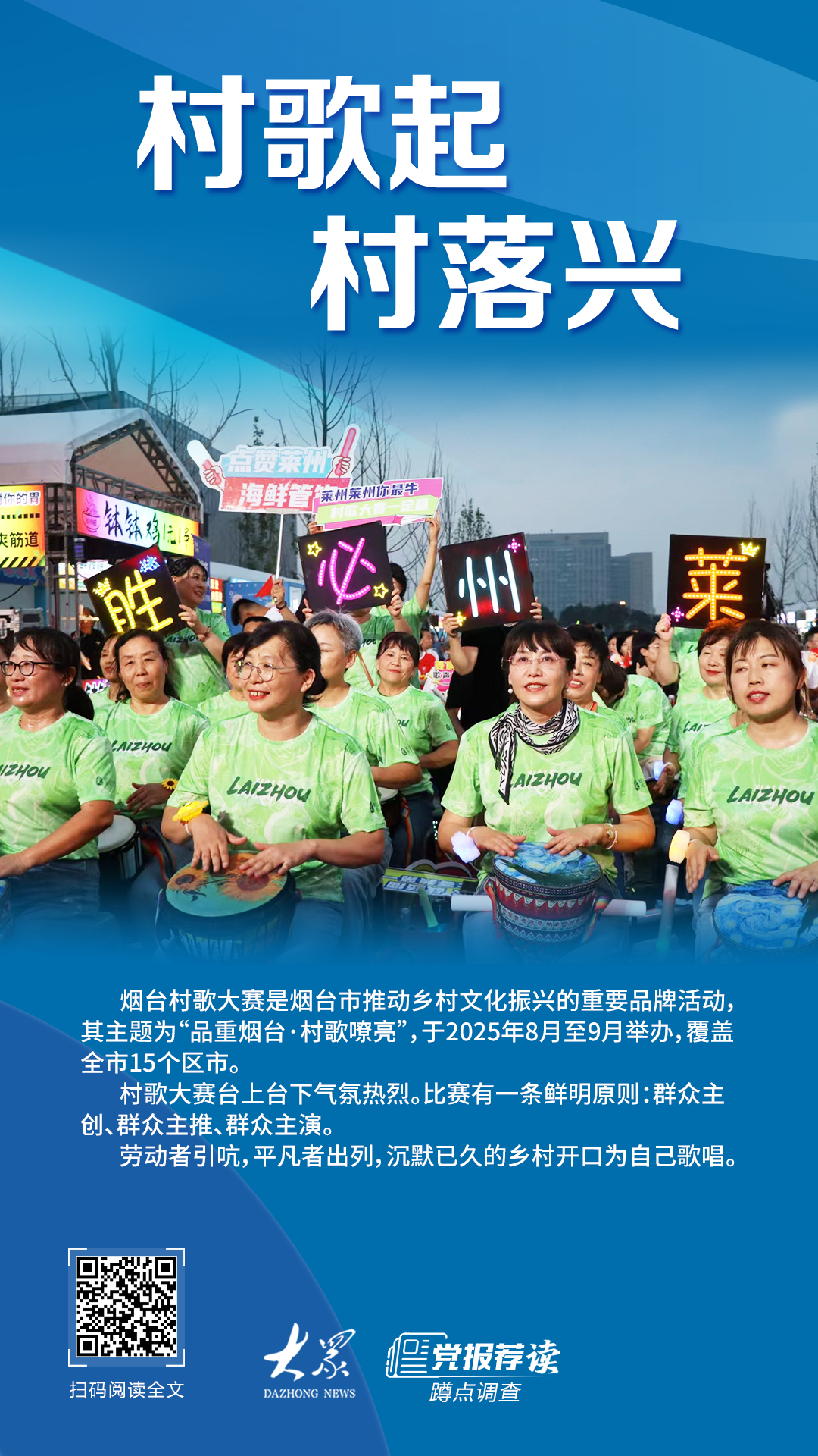 村里下雪了,秋收冬储,排练忙碌着。 12月12日,北方村庄被白雪覆盖。村夜年已近尾声。烟台龙口市殷村礼堂,风雪敲打窗户的声音渐渐被合唱团的歌声淹没。 “我们农民歌手就像这个莱阳梨,外表朴实,有点粗糙,但果肉细腻,脆甜。”南下,“大力姐”王艳萍正坐在莱阳市赵王庄镇鹿尔岗村的家中。他面对镜头相当自在。他笑起来括号很深,说话也很好听。他随手拿起桌上的莱阳梨,看着它深褐色的“疤痕”,做了上面的比喻。他认为,“对比”是烟台乡村歌曲大赛受欢迎的秘诀。十六公里外,周中海一栋别墅莱阳市河洛镇马雅口村的蒙古包,证实了《大力姐姐》的结局:这位82岁的老人,用一把随手拿起的塑料伞柄当指挥棒,指挥着37人的村合唱团走向千军万马的气势。平时拿铁锨、摘葡萄的手臂,有力有力,伸出来如流水一般。当歌曲《军民批量生产》结束时,观众长时间鼓掌。周忠海有些羞涩地说:“我们没有学指挥,只是给歌手们鼓励。”烟台乡村歌曲大赛是烟台市推动乡村文化振兴的重要品牌活动。其主题为“赏烟台·响亮乡村歌曲”,将于2025年8月至9月举办,覆盖全市15个区市。台上台下村歌比赛,现场气氛热烈。村歌比赛场内场外气氛热烈舞台(通讯员刘英供图)。大赛有明确的原则:大众创作、大众推广、大众主演。和王艳萍一样,“羊姐”、“豆条哥”也经常作为草根职业符号出现。工人们发声,老百姓走出来,沉寂已久的村庄开始为自己歌唱。从场边到中央,从低头干活到昂首歌唱,这个秋天,很多人从田野里唱到了舞台中央。一脚踩在泥土上,一脚踩在音乐会舞台上。备战或比赛进入冲刺阶段,恰逢葡萄收获季节。紧急工作和“文化工作”就像两艘摇摇欲坠的小船。在排练阶段,团队成员的泥土一英尺深,一英尺浅。在季节的催促下,合唱团自然而然地扩展成了“采摘队”。九月下旬,精致的拖拉机披着大红流头上顶着,鸣放礼炮,驶入龙口市石梁镇殷村。这是一家农业装备公司颁发的奖项,用来奖励这样一个合唱团:全部由农民组成,平均年龄超过60岁,成员总数超过120人。 9月21日,烟台乡村歌曲总决赛当晚,登台表演的106名队员身着全新定制服装。前排的女汉子穿着大红色的衣服,后排的队员则穿着白色的衬衫。光线打在他身上,灰色的太阳穴小心翼翼地隐藏在新染的黑发下。原创村歌《银村,我可爱的家乡》和经典红歌《我和我的祖国》相继传唱。它们美妙、悠扬、充满气势。就连音协的专业评委也给出了98.83的高分。对手赛后感慨道:“虽然我们队技术精湛,但尹村队却很厉害。”充满力量,充满情感,唱起来就像原汁原味的劳动号子一样具有感染力。 “龙口殷村唱的是一首原创村歌(通讯员刘英供图)。事实上,手上拿着冠军奖杯很自豪的农村老人,在比赛前还得苦练几个月的普通话,才能通过最低的比赛门槛。”晚上七八点钟,村民们还在议论纷纷,村民们还在与村民们比赛。不关心食物的排练场所。我一个字一个字地教他们口音。 “70岁的郭福荣有一头时尚的卷发,当过小学老师,是村里少有的文化人,他和文化站站长刁永利一起帮助村民排练。正因为如此,郭福荣感到非常自豪。他说:“你花团队雇人,你不可能比我更好。e.再次感受到被需要和信任,郭芙蓉的眼睛又闪闪发亮。队里年龄最小的栾雪直言,唱歌确实是一份“体力活”。他特别记得排练时,指挥让他挺直身体,用力唱歌。作为一个年轻人,“两个小时后,他的身体难免让我的身体僵硬了”。真的很直。我已经做到了。他们老了,还能走路吗?无路可走! “我们和年轻人不一样,我们不可能一下子就能学会,歌词需要一周多的时间才能背下来。所以我们可以在田间练习,在录音室唱歌。”村民郭树高一边说着,一边露出腼腆的笑容,扶正了帽檐。然而,“农民”的身份意味着他们始终有一份与生计相关的主要工作。唱歌似乎不得不让位于“严肃的事情”。银村是一个以种植巨峰葡萄而闻名的大村庄。该村拥有700多公顷的葡萄园。刚刚进入村子里,一座座塑料大棚笼罩在迷蒙的雾气中,发出沙沙的声音。温室里,绿叶环绕,饱满鲜嫩的红紫色果实正等待着采摘。 7月至9月,比赛准备工作进入冲刺阶段,恰逢葡萄收获季节。眼前的工作和“文化工作”就像两艘摇摇欲坠的船。队员们在泥土中一英尺深,在排练台上浅一英尺。村民赛前上楼练习(通讯员刘英供图)。如今队伍组建完毕,可以一起唱歌,并肩作战。在季的催促下,合唱队自然而然地扩展成了“采摘队”。尹村党支部书记刘玉祥自豪地提到,决赛前夕,队员王翠梅一脸悲伤地找到他,告诉他明天有经销商来收葡萄,他不能参加比赛。 ”不是所有的训练都白费了吗……”说着,他越发委屈。刘宇翔拍着胸口说道:“你这么着急干什么?我们一起来想办法。”随即,他带着几十名合唱团成员走进了葡萄园,张开双臂去收割。终于,上午10点,数千公斤红紫小果落入袋子,提前两个小时完成任务。王翠梅大喜,最后全力进城。农村?旁观者站在“C位”,在空心村里画“同心圆”——村歌比赛提供了一个火热而有力的新解决方案。 “这些歌词是关于我们自己的生活的,我觉得歌词对我来说真的很重要。村庄有最大的意义,没有一个是空话。”民歌的“骨架”是一个村庄被时间改变的自由风格。村歌《殷村我的》第一句《可爱的家乡》是“参天巨柳诉说着人生的沧